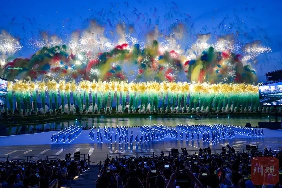 隨后,在“天府之檐”下,文體表演《錦繡之韻》、主題曲表演《友愛之聲》接續(xù)上演,將運(yùn)動項(xiàng)目與中華文化、巴蜀元素有機(jī)結(jié)合,展示出“運(yùn)動無限 氣象萬千”的主題。在萬眾期待下,世運(yùn)圣火在湖中點(diǎn)燃,以水火相生的科技創(chuàng)新美學(xué),向全世界傳遞夢想之光。