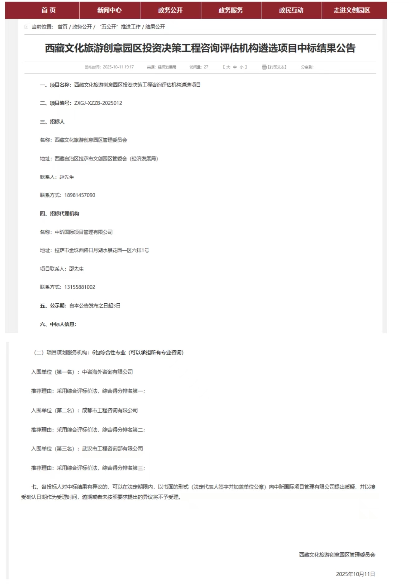 近日,成都市工程咨詢(xún)有限公司成功中標(biāo)“西藏文化旅游創(chuàng)意園區(qū)投資決策工程咨詢(xún)?cè)u(píng)估機(jī)構(gòu)遴選項(xiàng)目”,未來(lái)將作為綜合性專(zhuān)業(yè)咨詢(xún)機(jī)構(gòu),為園區(qū)提供覆蓋項(xiàng)目全周期的投資決策咨詢(xún)及評(píng)估服務(wù)。
