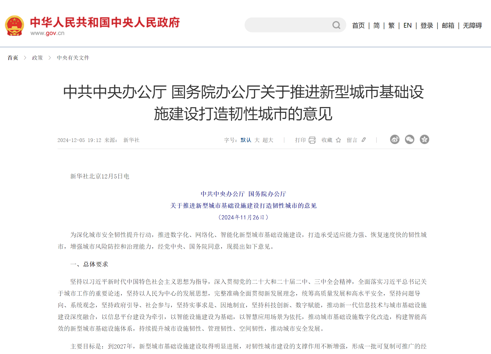 為深化城市安全韌性提升行動,推進(jìn)數(shù)字化、網(wǎng)絡(luò)化、智能化新型城市基礎(chǔ)設(shè)施建設(shè),打造承受適應(yīng)能力強(qiáng)、恢復(fù)速度快的韌性城市,增強(qiáng)城市風(fēng)險防控和治理能力,經(jīng)黨中央、國務(wù)院同意,現(xiàn)提出如下意見。