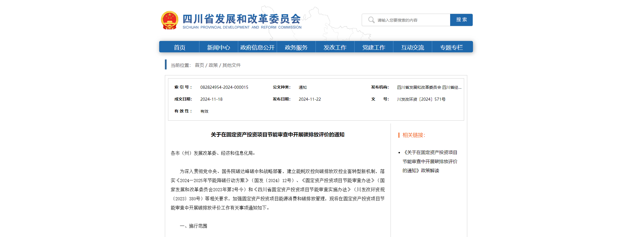 關(guān)于在固定資產(chǎn)投資項(xiàng)目節(jié)能審查中開展碳排放評價的通知 各市(州)發(fā)展改革委、經(jīng)濟(jì)和信息化局:為深入貫徹黨中央、國務(wù)院碳達(dá)峰碳中和戰(zhàn)略部署,建立能耗雙控向碳排放雙控全面轉(zhuǎn)型新機(jī)制,落實(shí)《2024—2025年節(jié)能降碳行動方案》(國發(fā)〔2024〕12號)、《固定資產(chǎn)投資項(xiàng)目節(jié)能審查辦法》(國家發(fā)展和改革委員會2023年第2號令)和《四川省固定資產(chǎn)投資項(xiàng)目節(jié)能審查實(shí)施辦法》(川發(fā)改環(huán)...